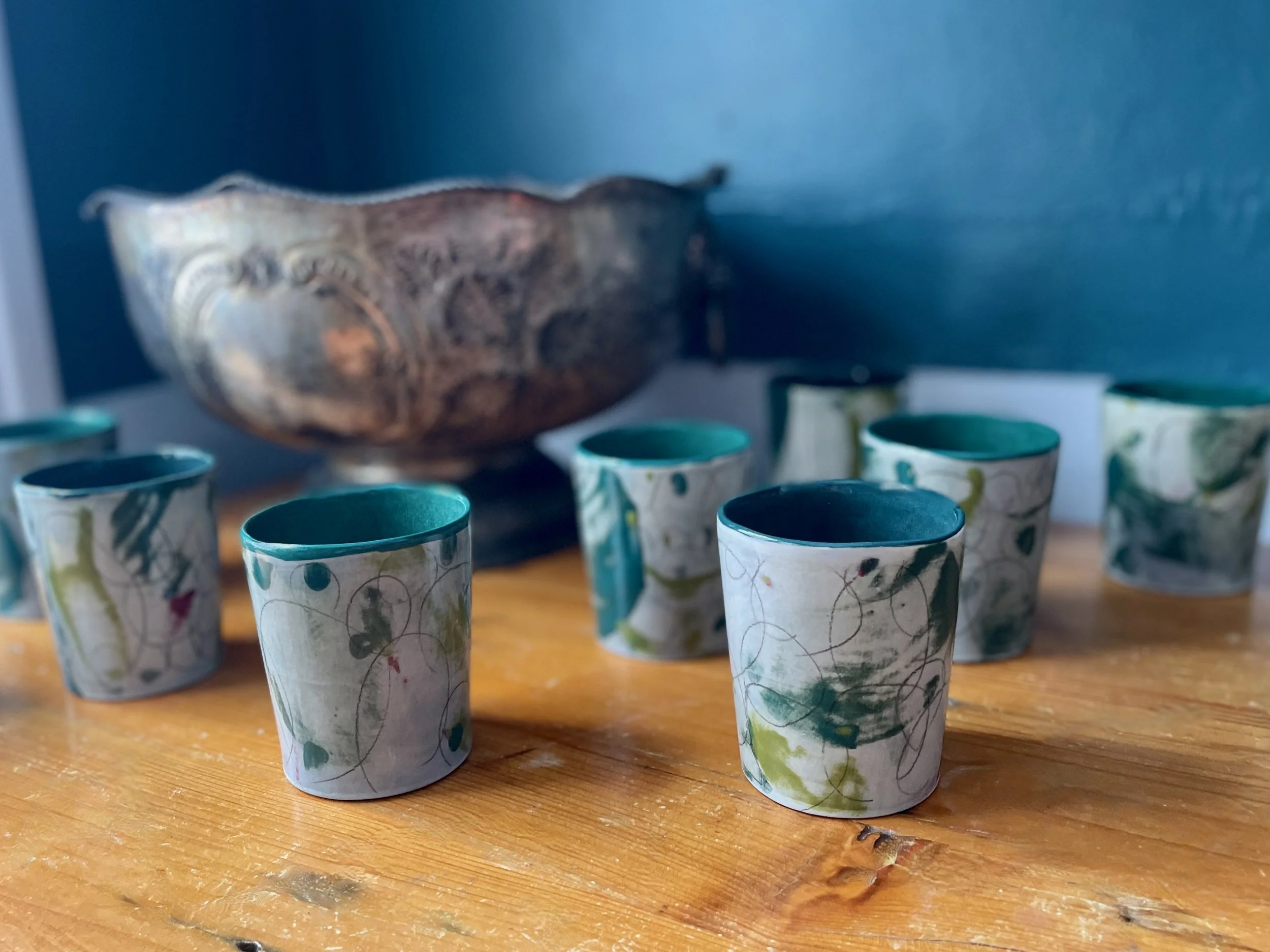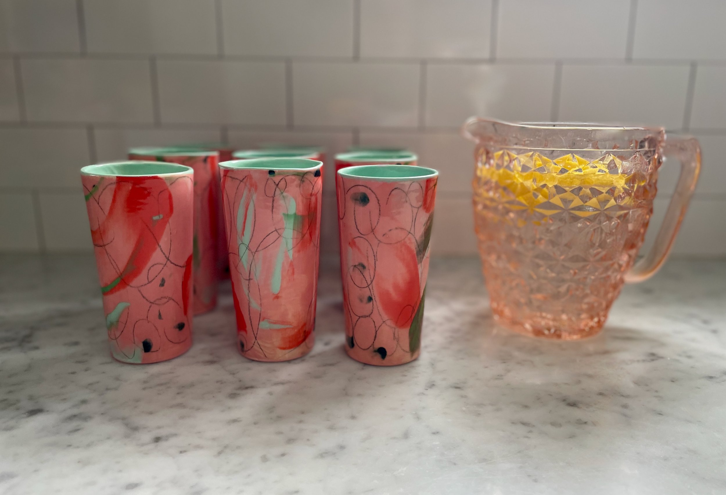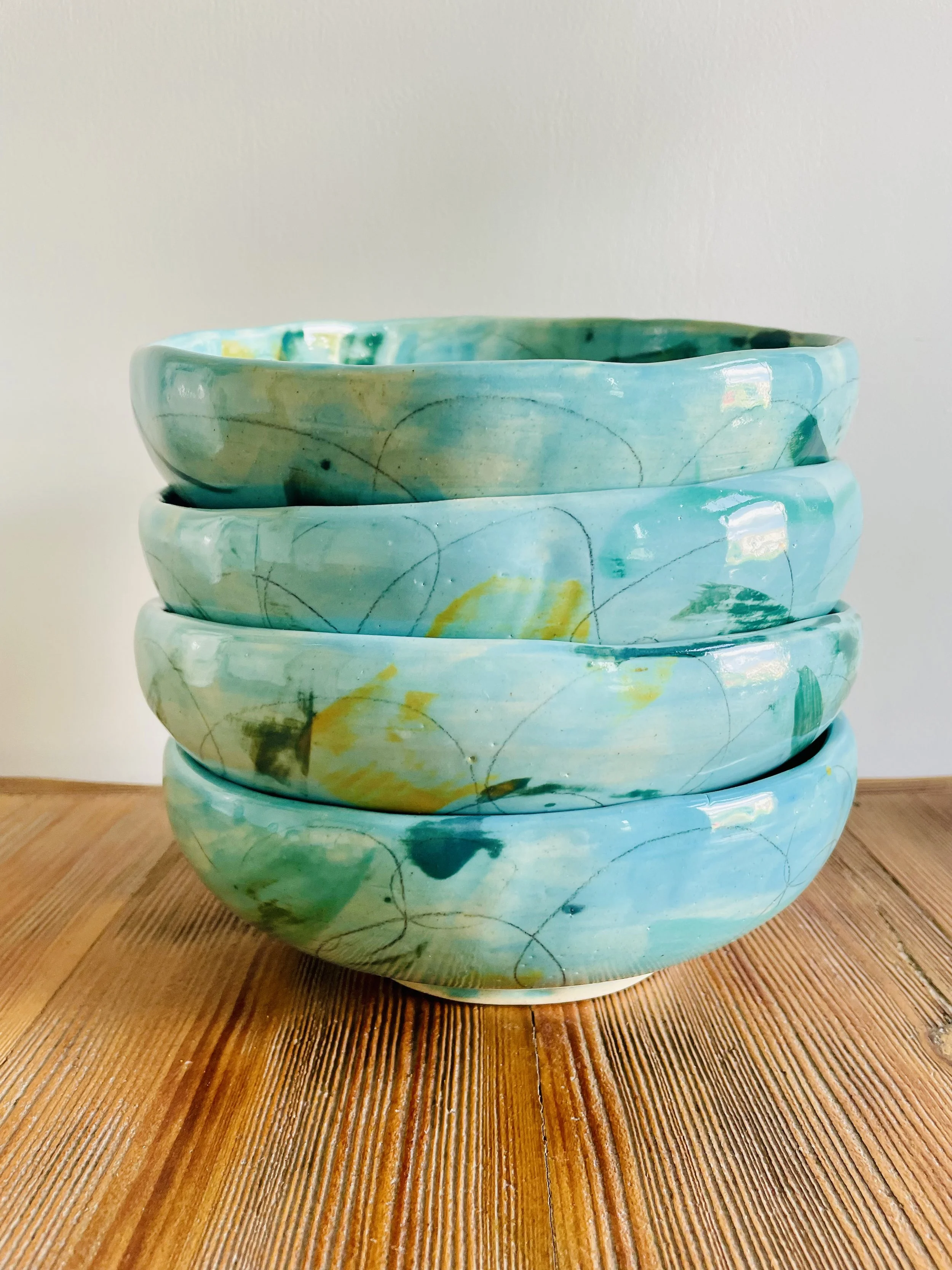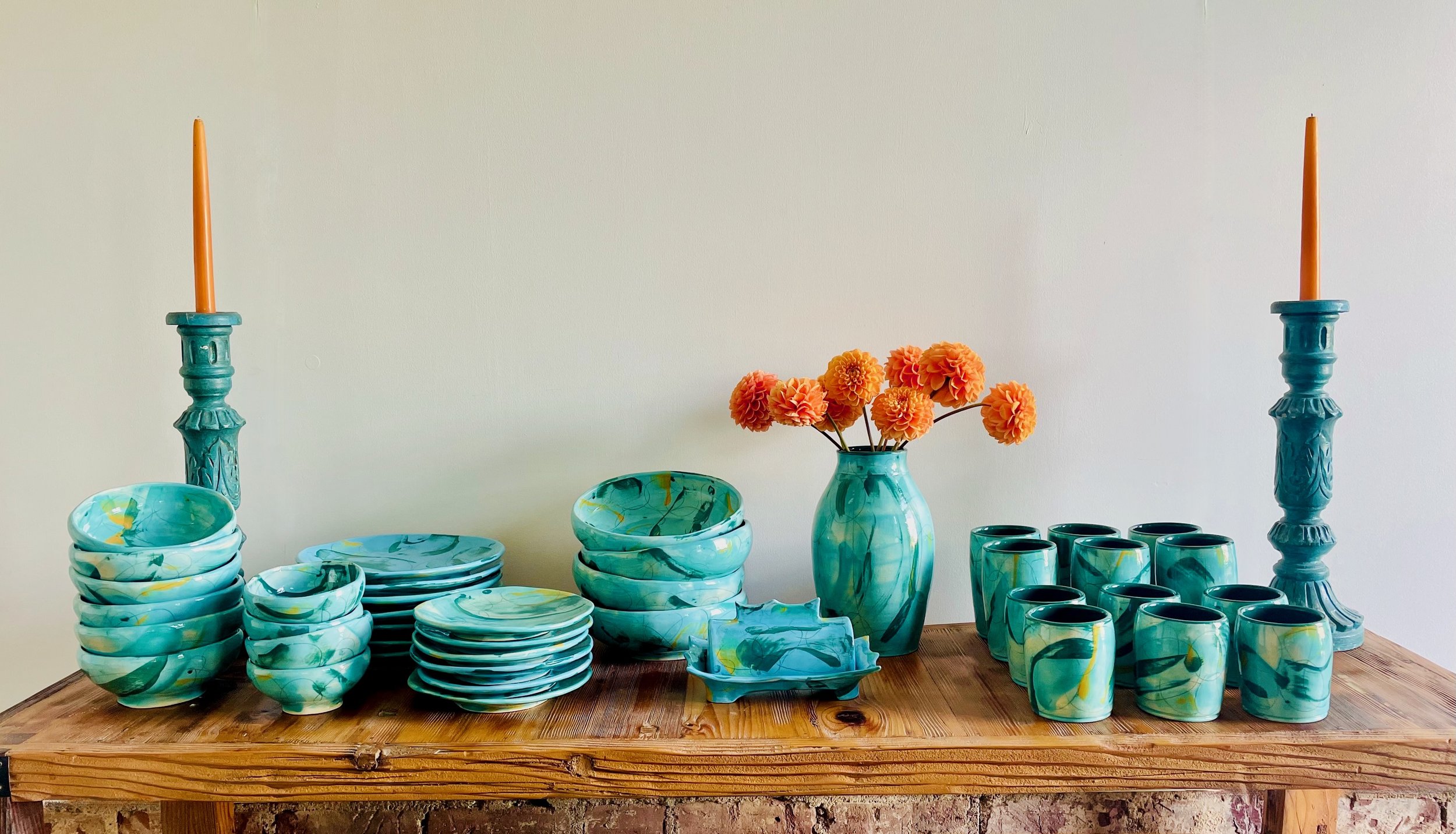 “Several years ago we visited Asheville. We happened to see some very unique pottery while touring the art district. The designer we were told was at her booth at an art show. We went over to see more and meet the artist. Angelique is precious. We ended up ordering an entire set of plates, bowls and glasses. I love using the dishes as every time I do, I get compliments. I have remained in contact with Angelique. I am thrilled I have been able to add additional pieces and will continue to do this.”